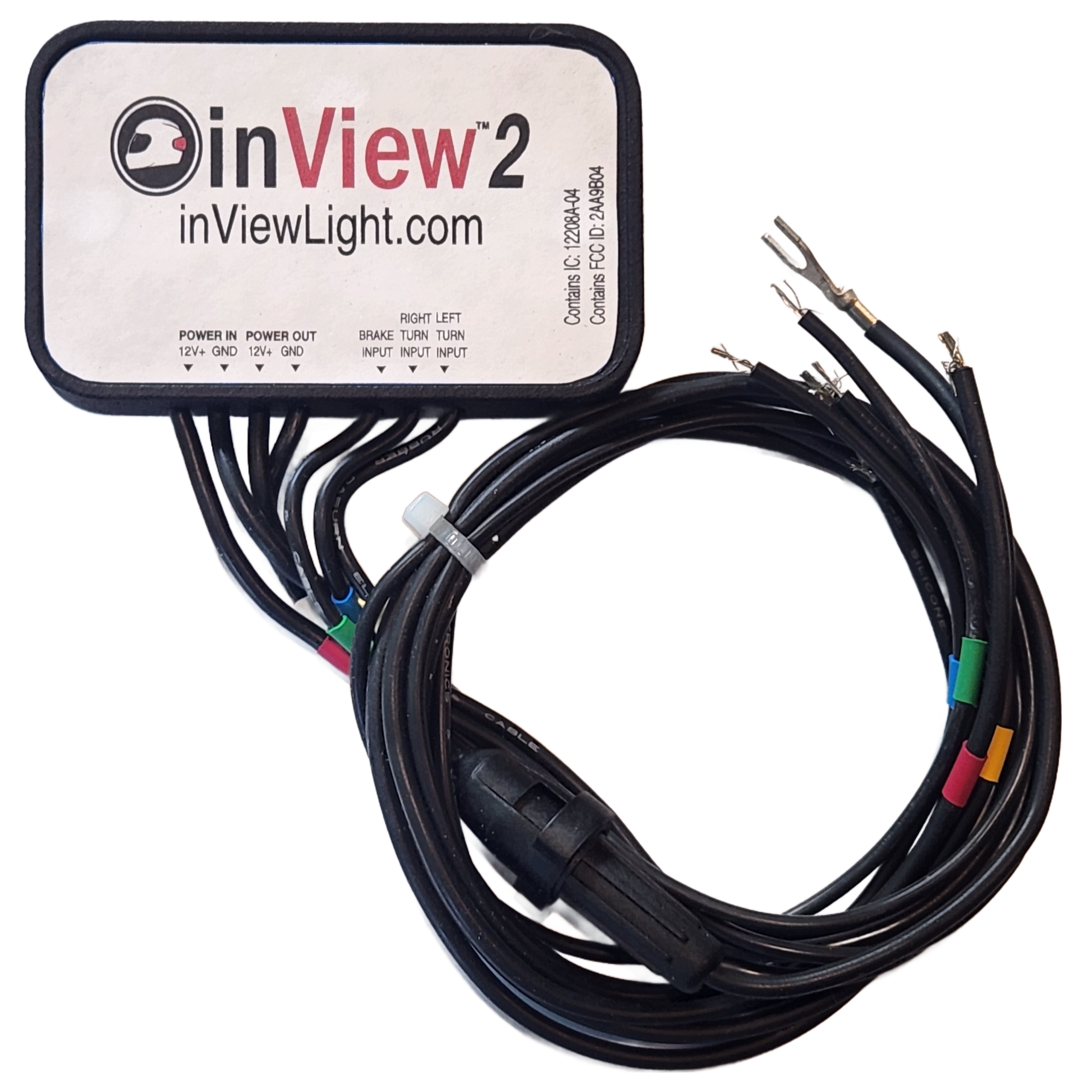 An inView®2 motorcycle transceiver and installation kit (does not include helmet unit). Used by customers who have already purchased an inView®2 system and have multiple motorcycles or individuals who have purchased inView®2 Lite (stand-alone helmet light) and wish to upgrade to add motorcycle integrated brake and turn signals and crash detection and reporting. NOTE: Compatible ONLY with inView®2 Systems.